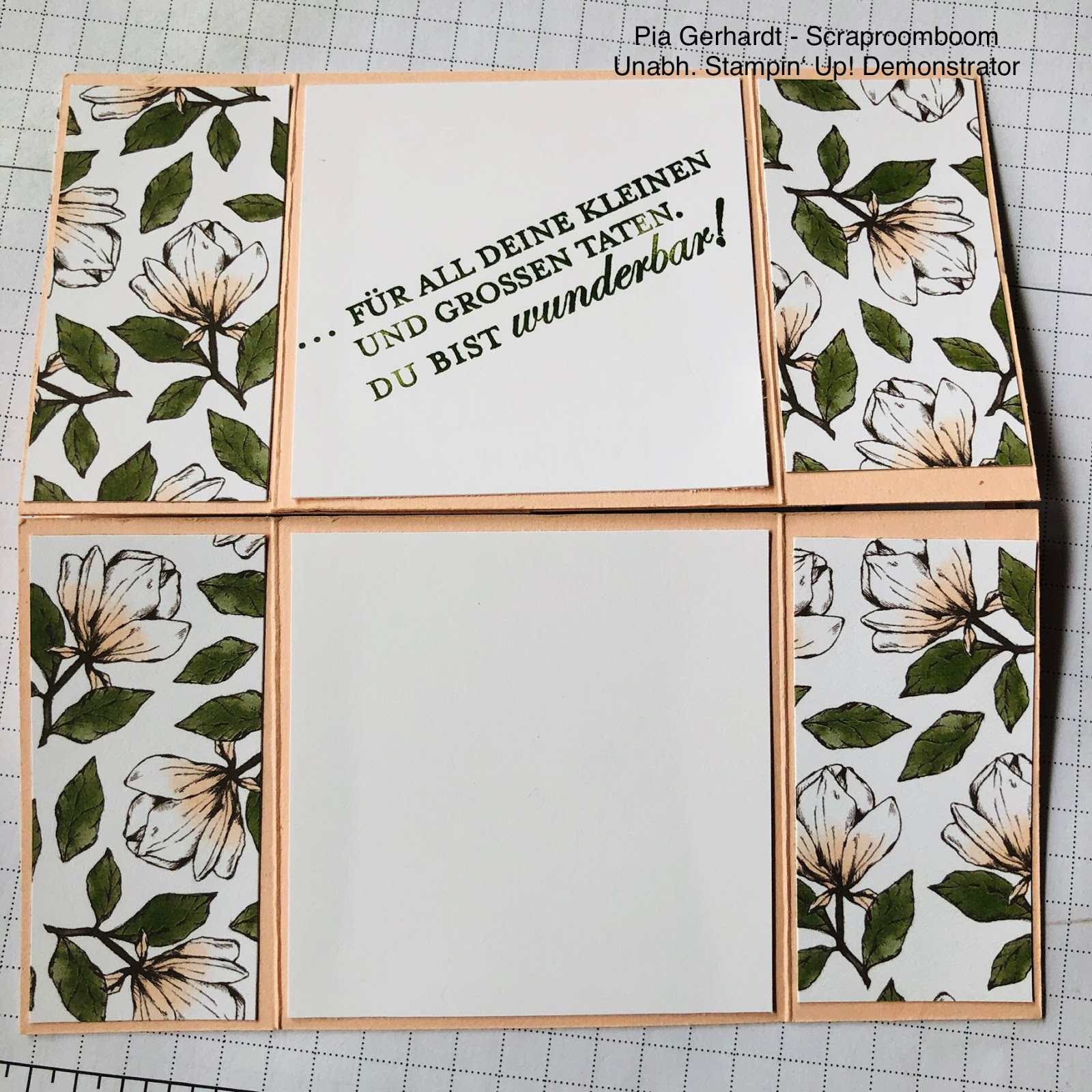 Jeden Monat gibt es bei mir Team-Basteln - im Juni gab es unter anderem verschiedene Versionen von Endlos-Karten. Dies Karet hier ist in Größren Variabel, wird aus vier stücke Farbkarton gemacht. Die Teilnehmer bekommen natürlich die Anleitungen mit, so können sie ihre eigenen Versionen nachbasteln oder Workshops bei ihre Kunden machen, ohne großen Aufwand zu haben.